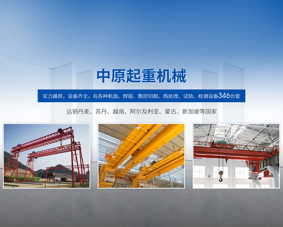 新鄉(xiāng)市中原起重機(jī)械有限公司成立于2000年,地處中原,輻射全國28個省市自治區(qū),設(shè)外埠經(jīng)銷處、辦事處268個。產(chǎn)品行銷工礦、建材、化工、冶金、電力、交通、鐵路、油田、港口等各個行業(yè)。遠(yuǎn)銷丹麥、蘇丹、越南、阿爾及利亞、蒙古、新加坡等國家?! 」緦?shí)力雄厚,設(shè)備齊全,有各種機(jī)加、焊接、數(shù)控切割、熱處理、試驗(yàn)、檢測設(shè)備7臺;有機(jī)加工、熱處理、單、雙梁橋門機(jī)生產(chǎn)、檢測、安裝等9個車間,研究中心、運(yùn)輸公司、安裝維修服務(wù)公司等機(jī)構(gòu),?  主要產(chǎn)品有:LD型1~20噸電動單梁起重機(jī)系列產(chǎn)品;5~600噸通用橋式、門式、冶金、上旋轉(zhuǎn)下旋轉(zhuǎn)電磁吊、絕緣、抓斗、防爆起重機(jī)系列產(chǎn)品;LH3~100噸葫蘆雙梁系列產(chǎn)品;MH5~32噸葫蘆門式系列產(chǎn)品;0.5~40噸CD1、MD1鋼絲繩電葫蘆系列產(chǎn)品;HS1型0.5~20噸手動葫蘆系列產(chǎn)品;0.5~10噸環(huán)鏈電動葫蘆系列;0.5~40噸彎道電動葫蘆系列產(chǎn)品;裝卸橋、造船門機(jī)、架橋機(jī)、鑄造吊和水電大噸位起重機(jī)系列產(chǎn)品?! 」窘⒘藦?qiáng)有力的質(zhì)量保證體系和生產(chǎn)過程的質(zhì)量控制系統(tǒng),嚴(yán)格執(zhí)行國家設(shè)計(jì)、生產(chǎn)標(biāo)準(zhǔn),有嚴(yán)格的生產(chǎn)工藝過程和標(biāo)準(zhǔn),嚴(yán)格的檢驗(yàn)、檢測標(biāo)準(zhǔn)和手段。